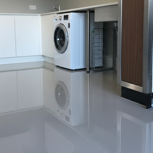 Een gietvloer vormt een volwaardige, naadloze vloer die meer bescherming biedt dan een vloercoating, zonder de zware opbouw van een troffelvloer. Hierdoor is deze slijtvaste vloerafwerking geschikt voor intensief gebruik in praktische ruimtes zoals garages en bijkeukens.